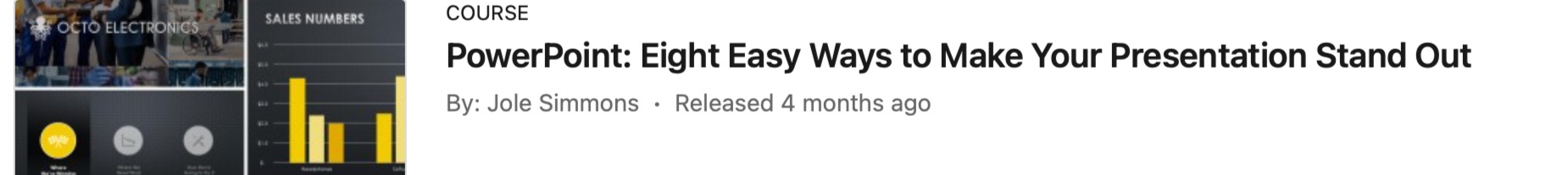 I've never created a powerpoint that I had to present before so I completed a linked in learning course ' powerpoint: eight ways to make your presentation stand out'.